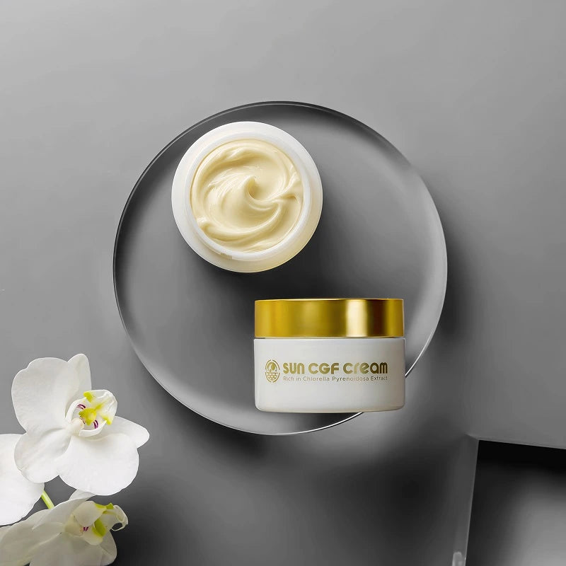 Sun CGF Cream pairs nourishing emollients with chlorella extract, also known as Chlorella Growth Factor (CGF)—a chlorella-derived complex that includes amino-acid and nucleic-acid components. The silky, lightweight texture absorbs quickly, leaving skin feeling supple and balanced.