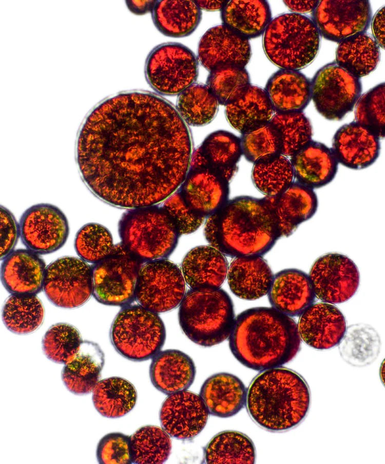Astaxanthin sourced from Haematococcus microalgae; identity, purity, and composition are evaluated for each lot.